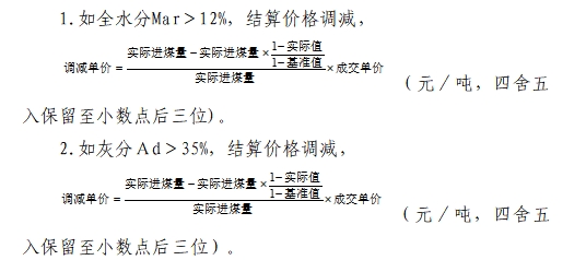 (5)如化驗單批次Qnet,ar<(基準值-300),該批煤作廢,按0元結算。