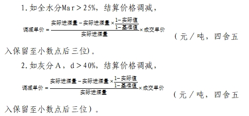 (4)如化驗單批次Qnet,ar<(基準值-300),該批煤作廢,按0元結算。